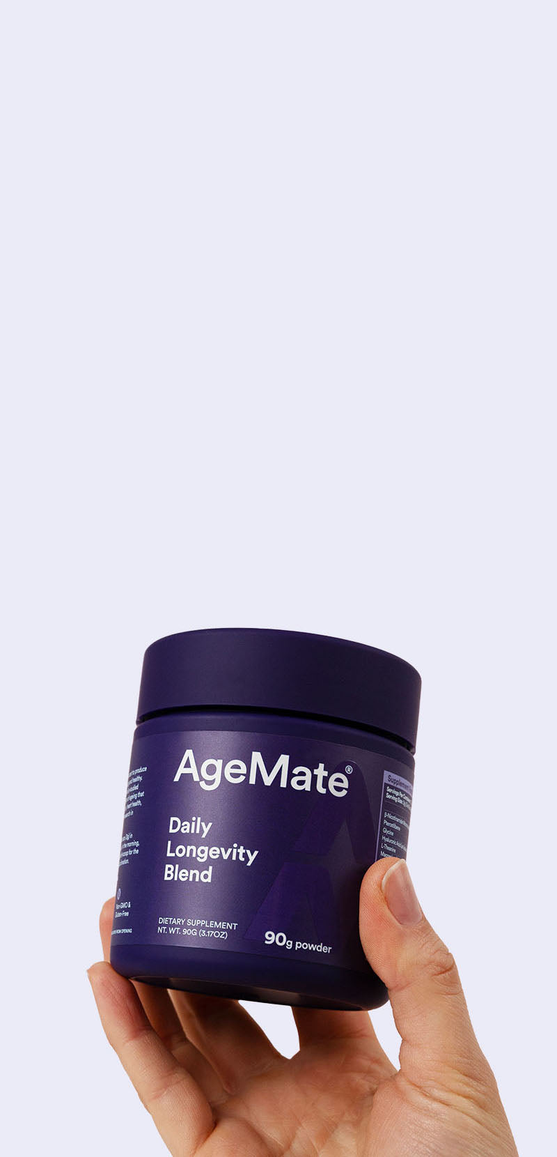 Only AgeMate® has everything your body needs to tackle the root causes of ageing and condenses the latest research in longevity into a simple daily routine.